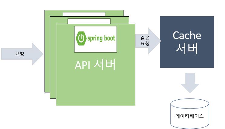 API서버가 하나일 때는 요청이 들어왔을 때에 local cache에서 값을 저장했다가 같은 요청에 대하여 DB를 참조하지 않고 cache에 있는 값을 가져온다.